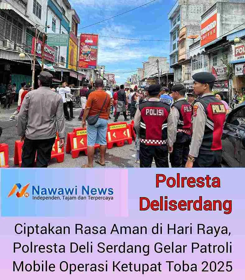 Deli Serdang — Dalam upaya menjaga stabilitas keamanan dan ketertiban masyarakat (kamtibmas) selama momentum Hari Raya Idulfitri 1446 H, Satuan Tugas (Satgas) Preventif Operasi Ketupat Toba 2025 Polresta Deli Serdang melaksanakan patroli mobile di sejumlah titik keramaian dan objek vital, Selasa (8/4/2025).