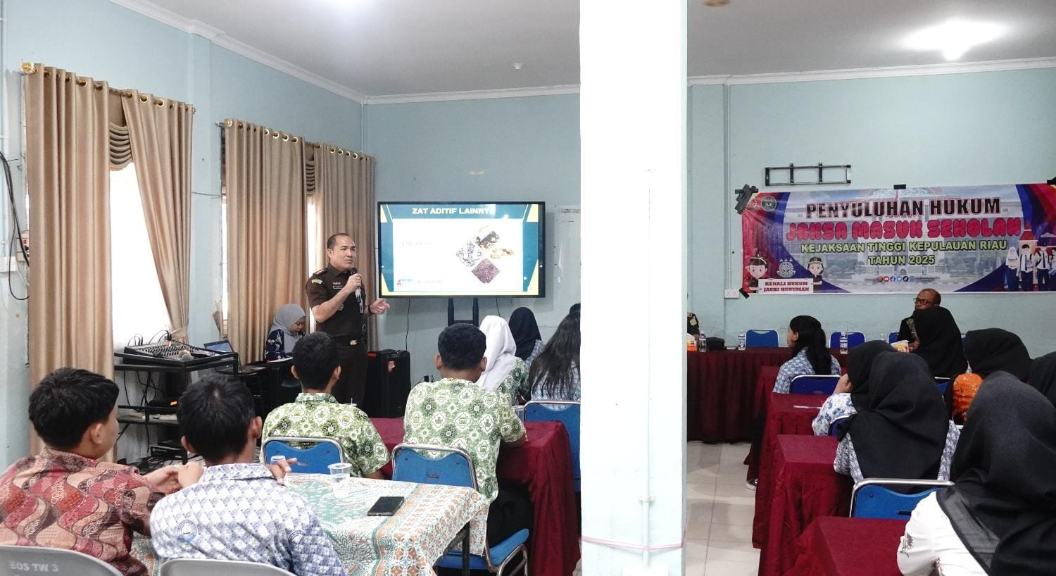 Kejati Kepri || nawawinews.id – Kejaksaan Tinggi Kepulauan Riau melalui Program Pembinaan Masyarakat Taat Hukum (BINMATKUM) pada kegiatan Penyuluhan Hukum kembali menggencarkan kegiatan Program Jaksa Masuk Sekolah (JMS) di SMA Negeri 14 Batam dengan mengangkat tema tentang “Pencegahan Penyalahgunaan dan Peredaran Gelap Narkotika, Psikotropika dan Zat Adiktif Lainnya (Napza) serta Anti Perundungan (Bullying) dan Bijak Bermedia Sosial”. Kegiatan ini dilaksanakan dalam rangka pembentukan revolusi mental karakter dan peningkatan kesadaran hukum anak bangsa merupakan generasi penerus bangsa, Kamis (16/10/25).