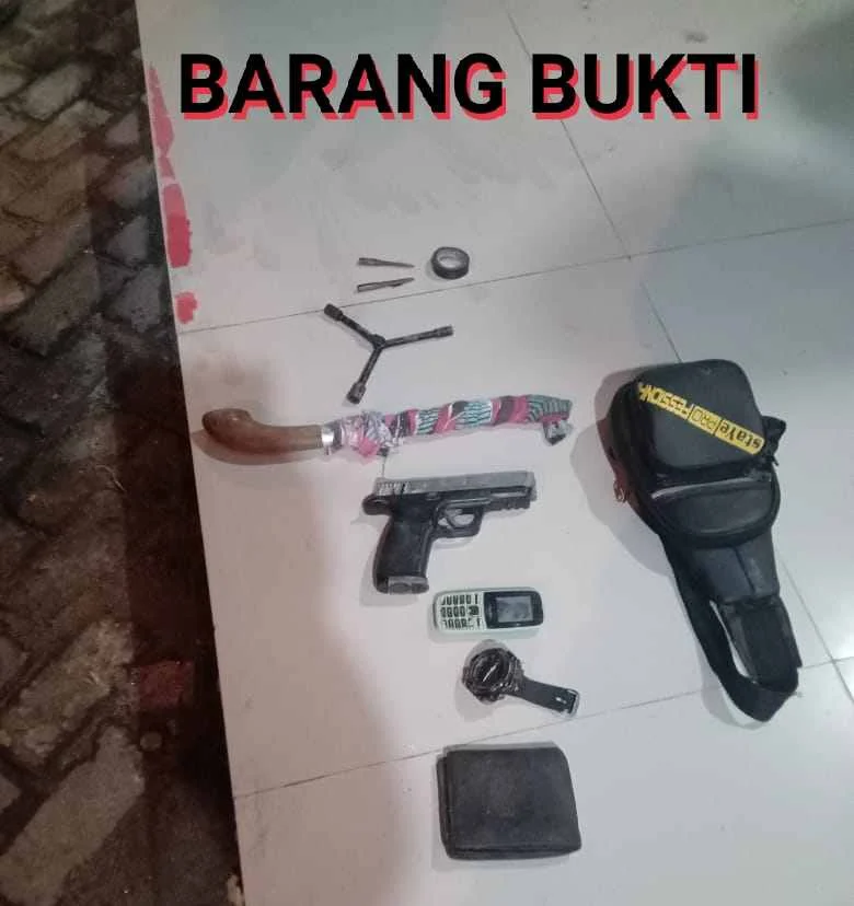 Selain senjata api dan sajam, polisi juga menyita barang bukti lain seperti :