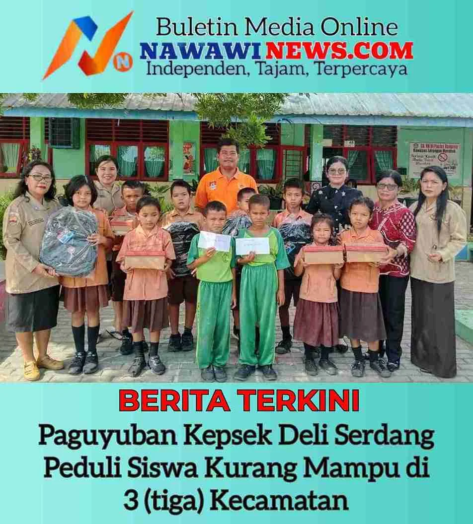 Deli Serdang — Paguyuban Kepala Sekolah (Kepsek) Kabupaten Deli Serdang memberikan tali asih berupa tas dan sepatu kepada sejumlah murid Sekolah Dasar (SD) yang kurang mampu, Jum’at (9/5/2025).
