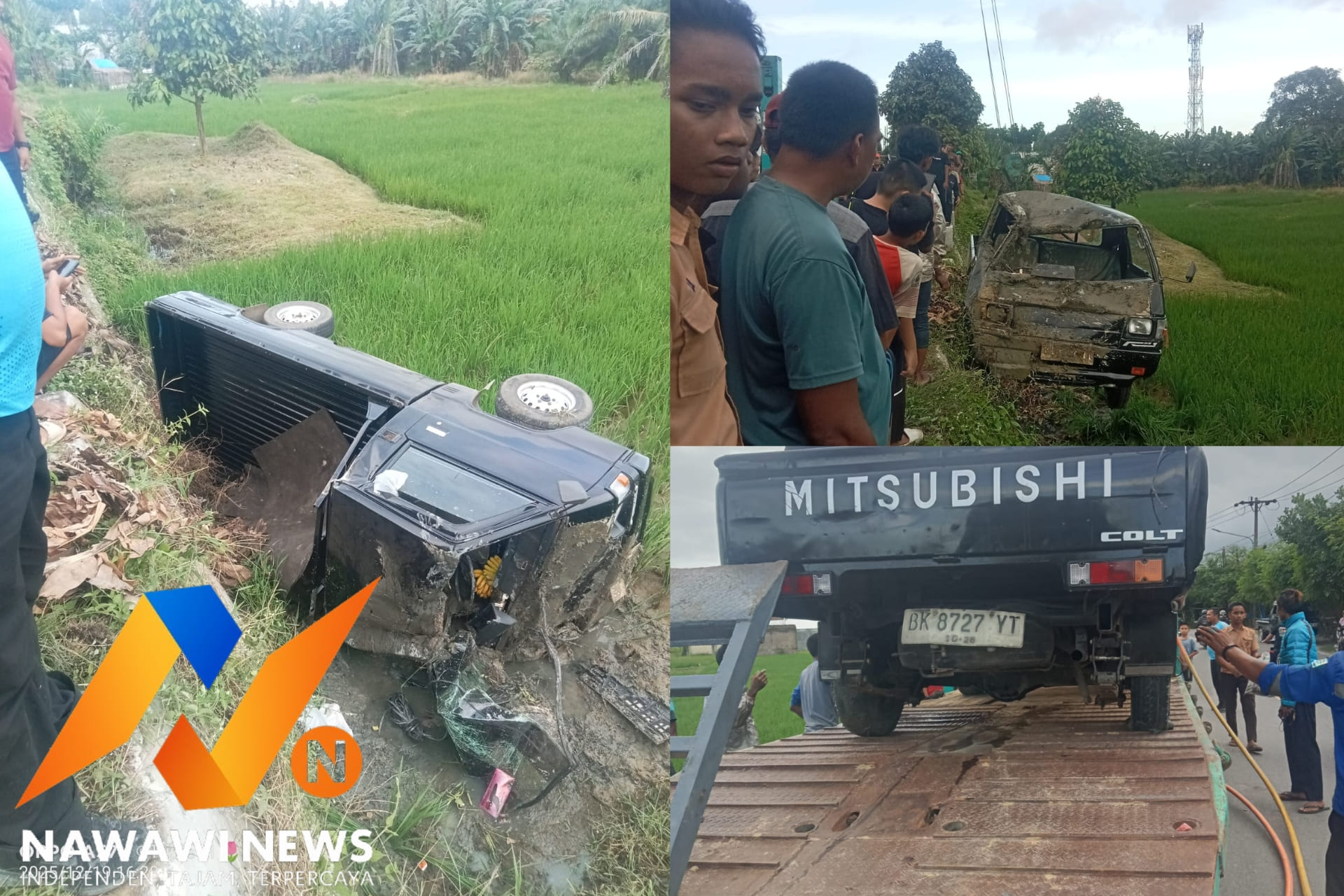 Deli Serdang || NAWAWINEWS.ID  – Sebuah mobil pickup Mitsubishi L300 dengan nomor polisi BK 8727 YT mengalami kecelakaan tunggal di Jalan Rumbia, Dusun V Benteng, Desa Baru, Kecamatan Batang Kuis, Kabupaten Deli Serdang, Jumat (19/12/25) sekitar pukul 15.30 WIB.