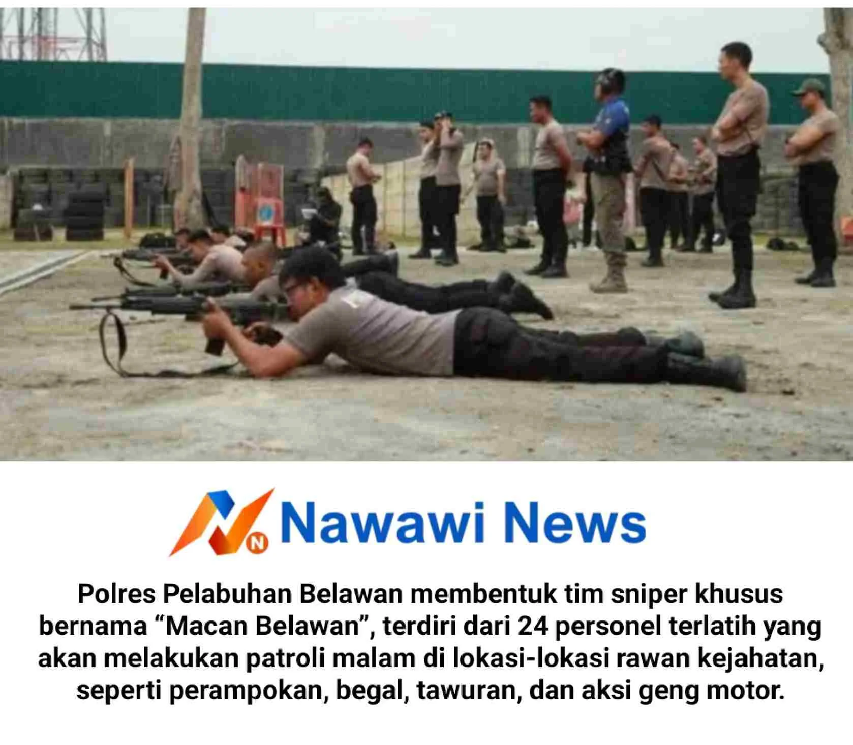 Dalam upaya menekan angka kejahatan jalanan yang semakin marak, Polres Pelabuhan Belawan membentuk tim sniper khusus bernama “Macan Belawan”.