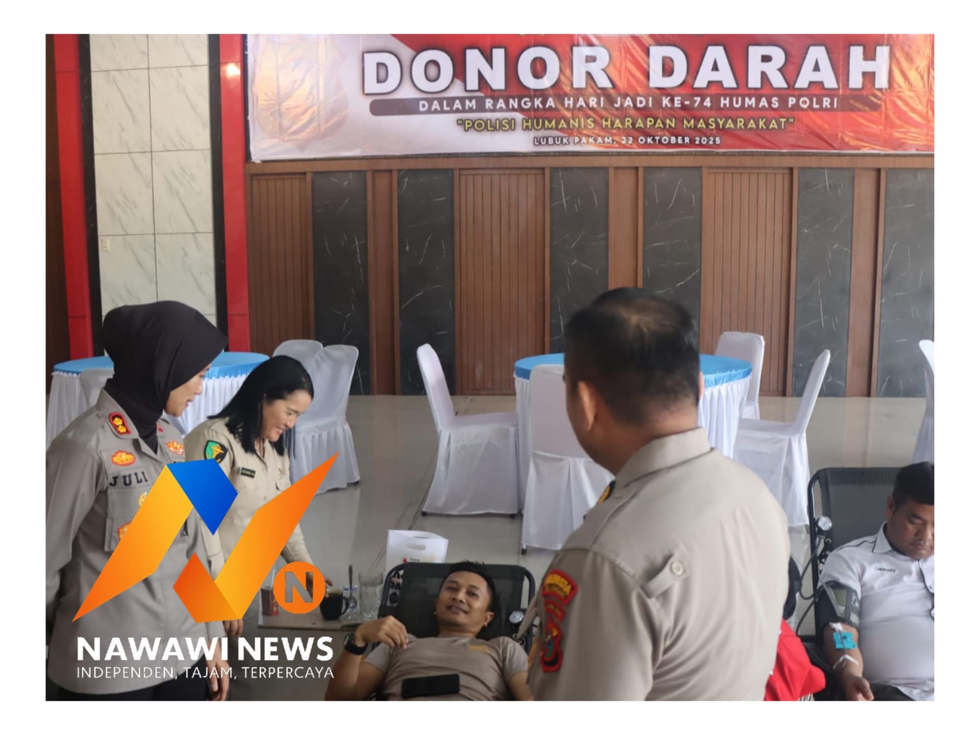Deli Serdang || nawawinews.id – Dalam rangka menyambut Hari Jadi ke-74 Humas Polri yang jatuh pada tanggal 30 Oktober 2025, Polresta Deli Serdang melaksanakan kegiatan donor darah yang berlangsung di Aula Terbuka Polresta Deli Serdang, Rabu (22/10/25).