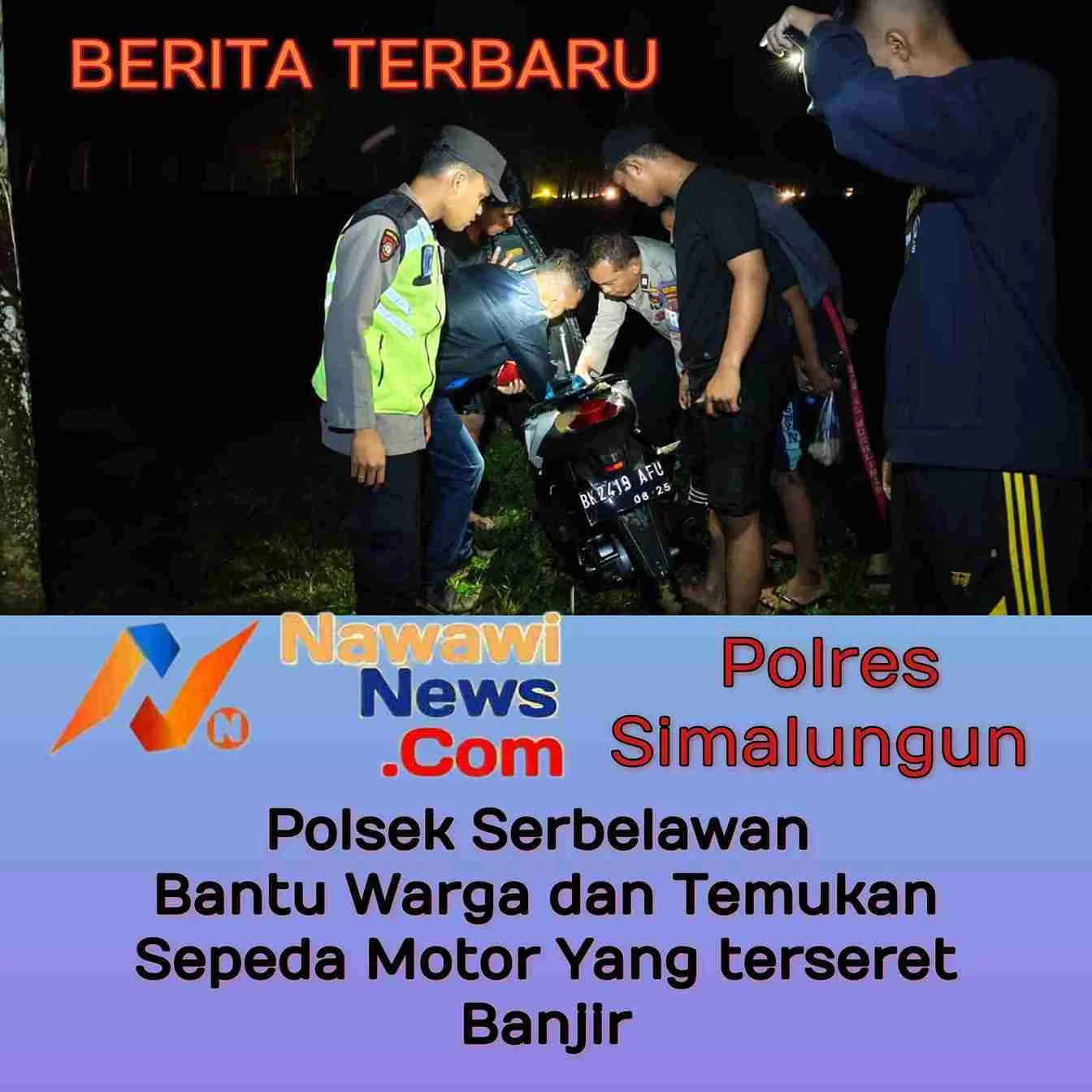 Polsek Serbalawan bergerak cepat dalam membantu warga dan melakukan pencarian kendaraan yang terseret arus.