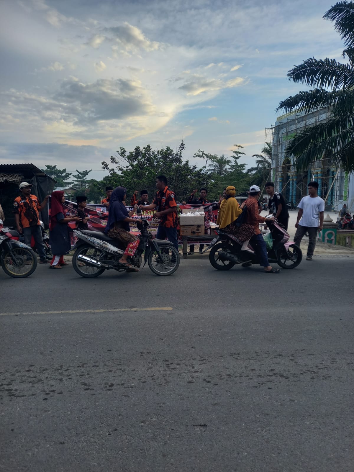 Sejak sore hari, para kader dan pengurus PP Ranting Aras Kabu tampak antusias membagikan paket ta’jil kepada pengendara sepeda motor, mobil, maupun masyarakat sekitar yang melintas di lokasi kegiatan.
