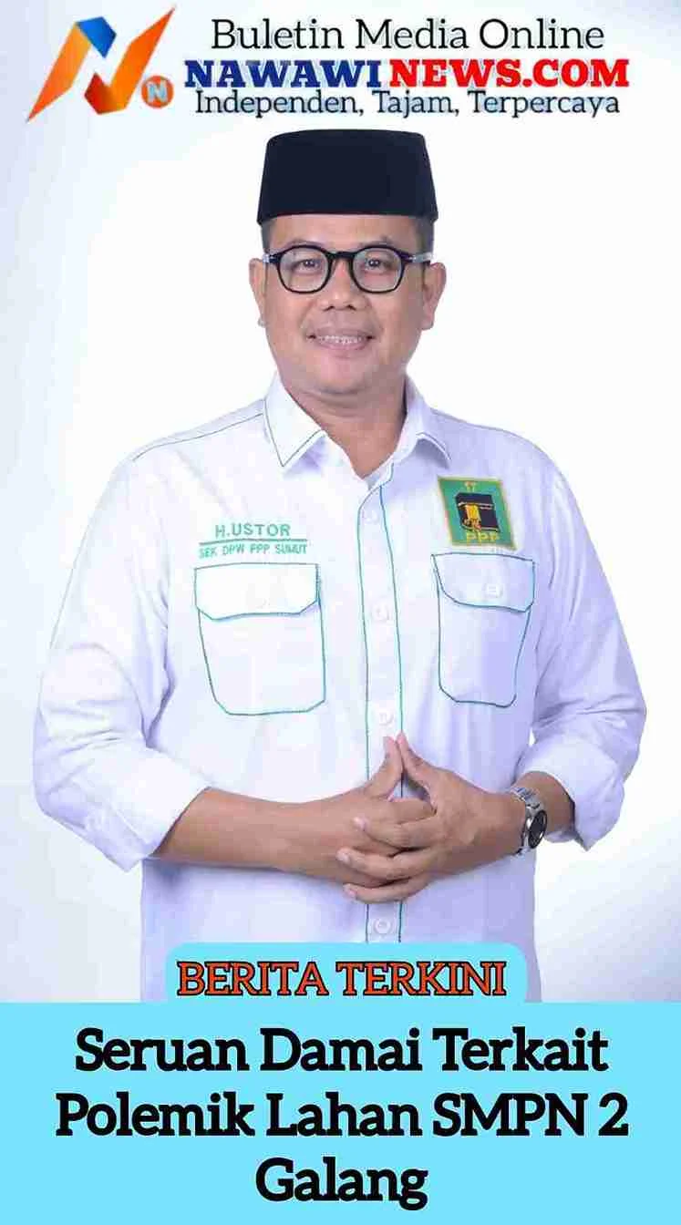 Deli Serdang — Sekretaris Dewan Pimpinan Wilayah (DPW) Partai Persatuan Pembangunan (PPP) Sumatera Utara, Usman Effendi Sitorus, menyerukan agar seluruh pihak menahan diri menyikapi polemik lahan seluas 8.200 meter persegi di Desa Petumbukan, Kecamatan Galang, Kabupaten Deli Serdang.