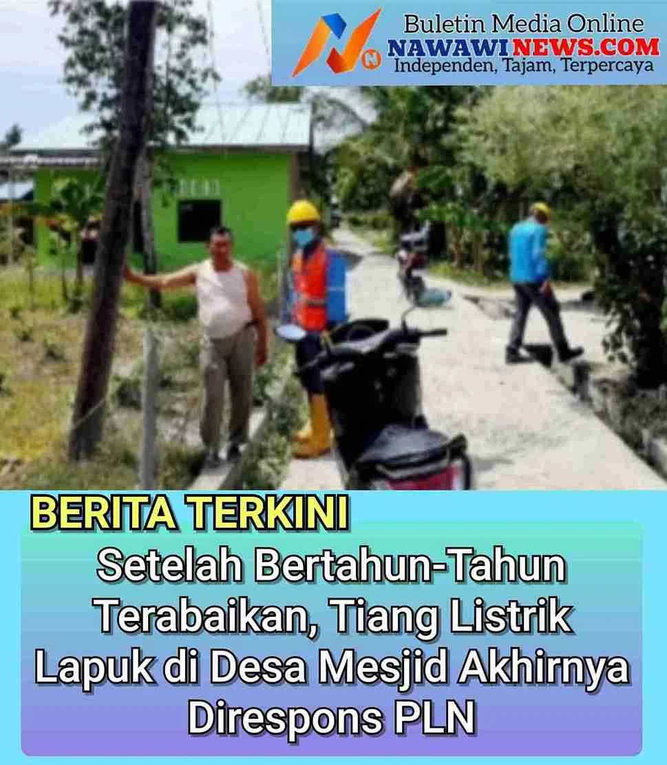 Batang Kuis, Deli Serdang — Keresahan warga Desa Mesjid, Kecamatan Batang Kuis, Kabupaten Deli Serdang, terkait tiang listrik kayu yang keropos (lapuk) dan nyaris roboh akhirnya mendapat perhatian serius dari pihak PLN Deli Serdang.