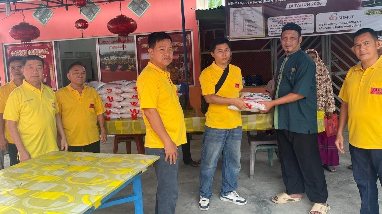 Penyaluran bantuan paket sembako tersebut dilakukan di halaman Vihara Sien Thien Sang Thi Jalan Perintis Kemerdekaan Lingkungan II Kelurahan Galang Kota Kecamatan Galang, Sabtu (14/02/2026).